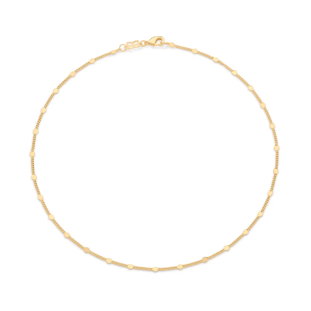 Gargantilha formada por corrente de elo groumet diamantado intercalado por elo baatido.