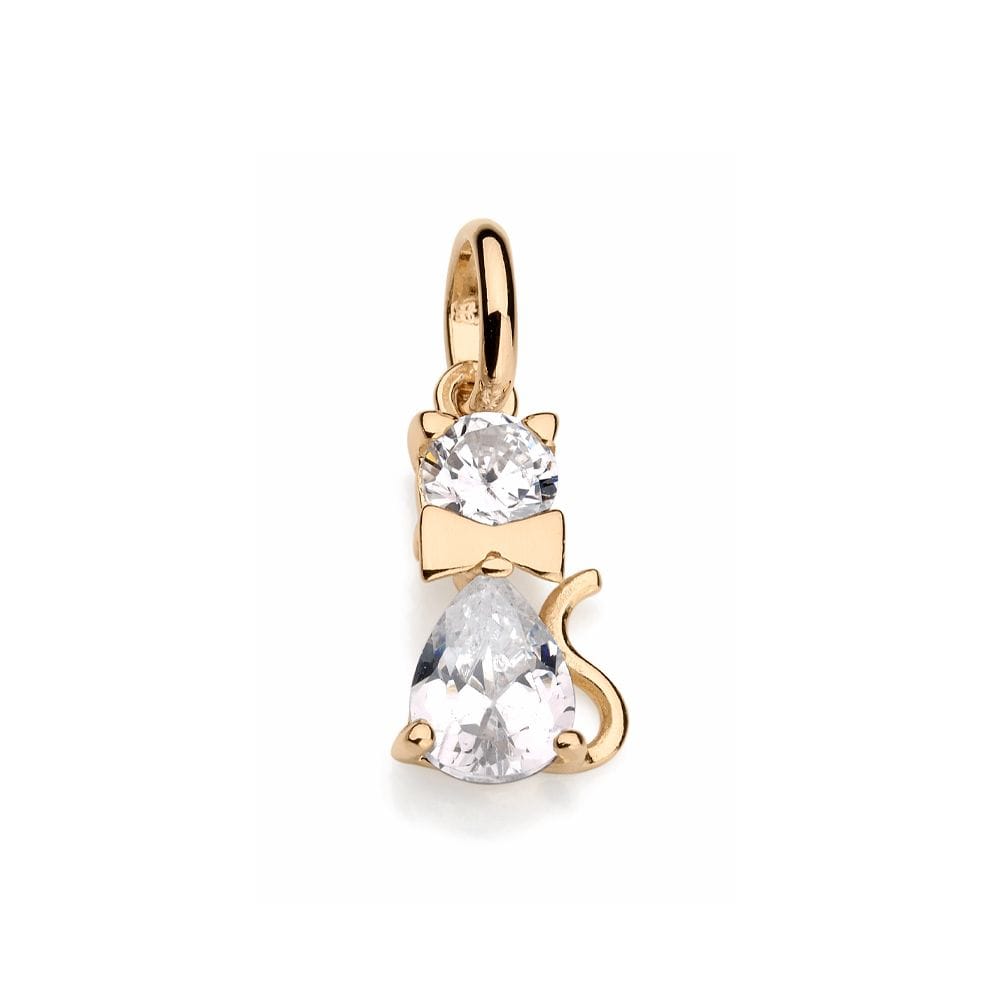 Pingente Rommanel em formato de gato com zircônias formando o corpinho e detalhe dourado formando uma gravata.