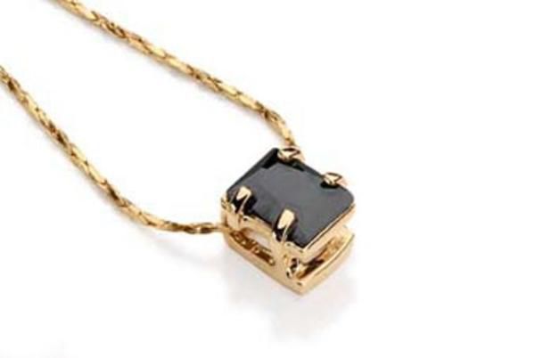 PINGENTE ROMMANEL DOURADO ZIRCÔNIA PRETA RETANGULAR TIPO SOLITÁRIO