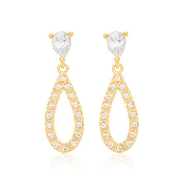 Brinco base gota de zircônia, fromado por gota cravejada por 34 (par) zircônias. med 3,0 cm.