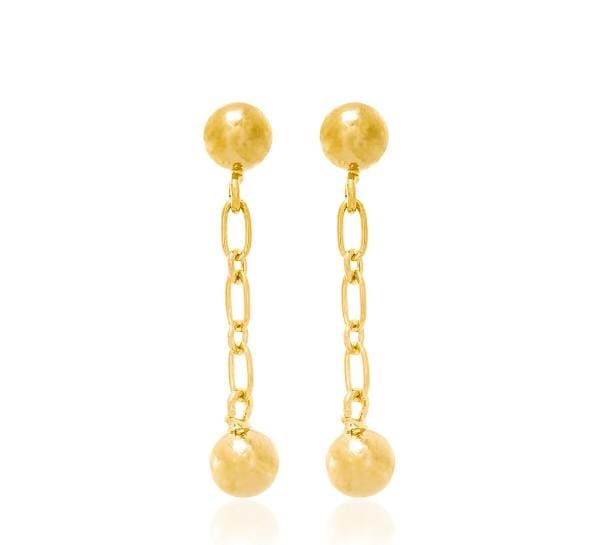 Brinco formado por bolas de 4mm lisas intercaladas por fio elos. med 2,1cm.